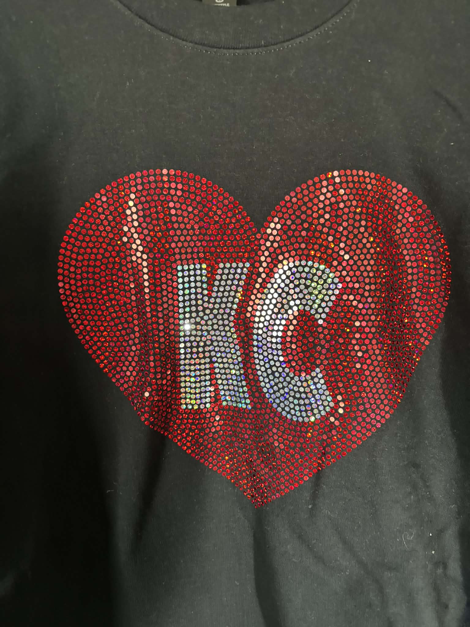 • Bright red rhinestone heart with crystal KC lettering